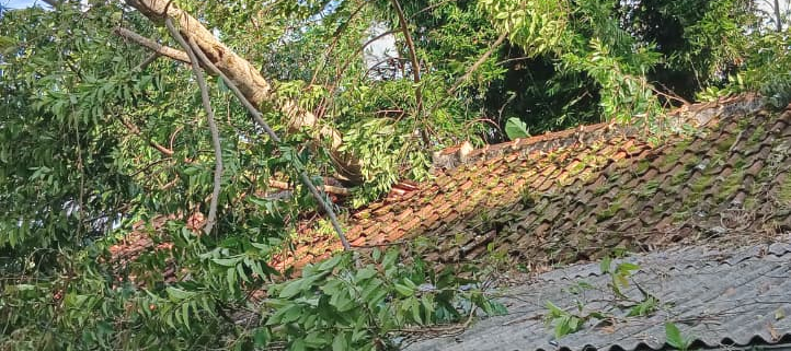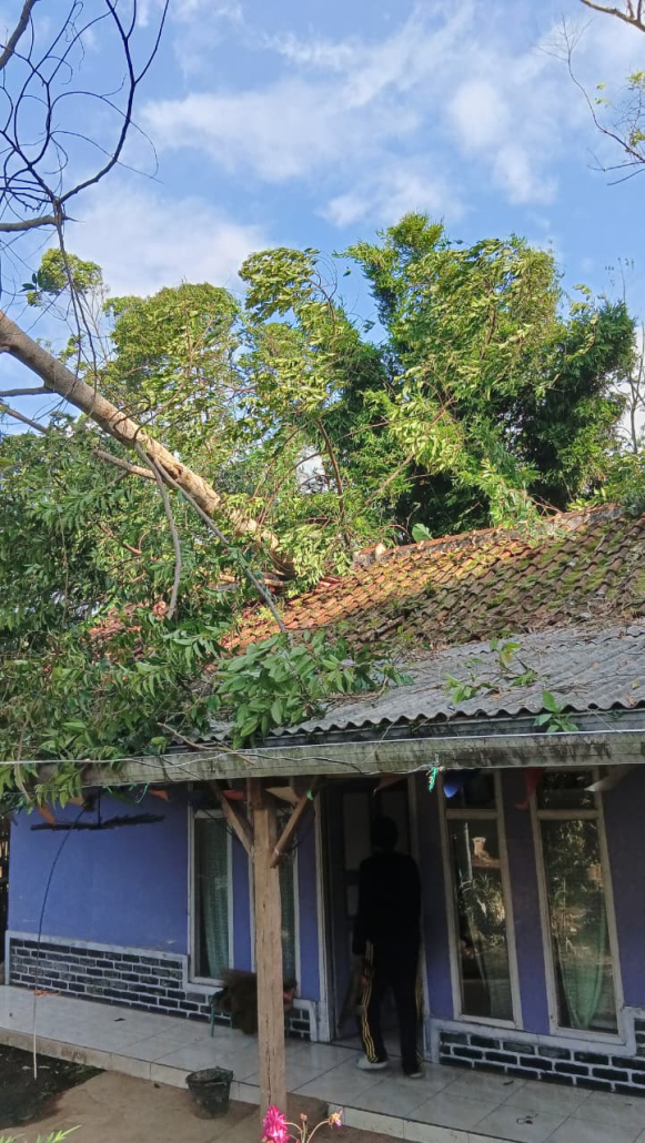 Akibat terpaan angin yang cukup kuat, sebuah pohon di sekitar permukiman warga tumbang dan menimpa atap rumah milik korban. Beruntung, dalam kejadian tersebut tidak terdapat korban jiwa. Namun, rumah korban mengalami kerusakan pada bagian atap dengan kategori rusak sedang.